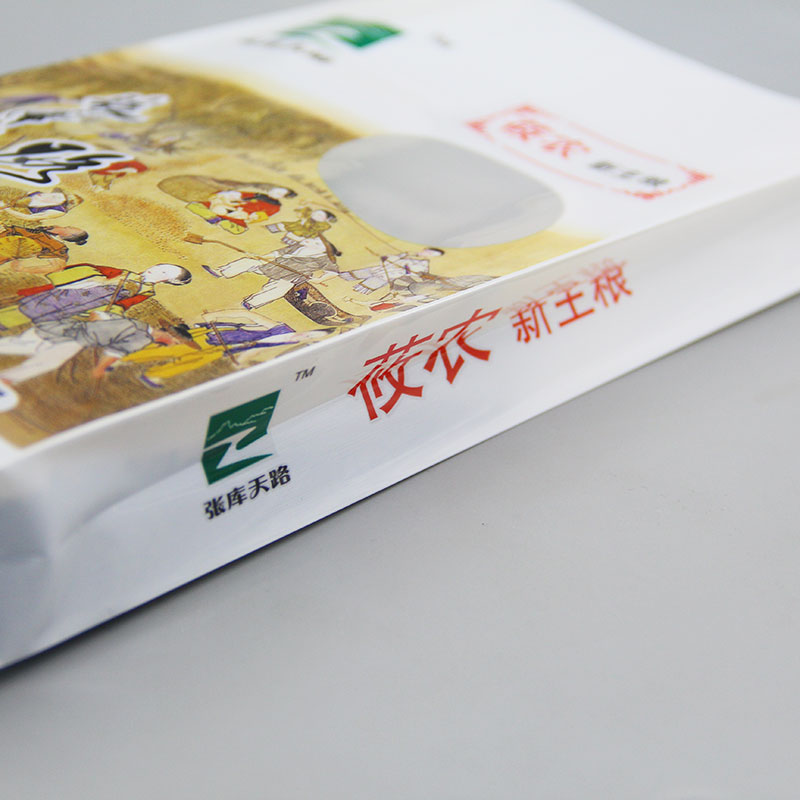 背封袋又叫中封袋是包裝行業(yè)的專用詞匯,簡單的講就是在袋體背面進(jìn)行封邊的包裝袋,背封袋的應(yīng)用范圍非常廣泛,一般糖果、袋裝方便面、袋裝乳制品等均采用此類包裝形式。 背封袋相比其他包裝形式由于袋體兩側(cè)沒有封邊,因此保證了包裝正面的圖案完整,比較美觀。同時(shí)排版設(shè)計(jì)上可以將袋體圖案設(shè)計(jì)為一個(gè)整體,可保持圖片連貫性。而由于封口在背面,因此袋體兩側(cè)可承受更大的壓力,降低了包裝破損的可能性。而且同等大小的包裝袋采用背封的形式封口總長度最小,這也從一定意義上降低了封口開裂的概率。