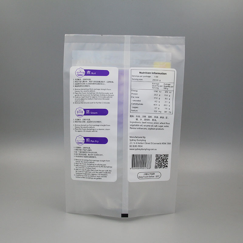 產(chǎn)品名稱:200g餃子洋蔥牛肉+啞光塑料復(fù)合冷凍+背封袋