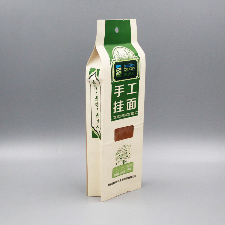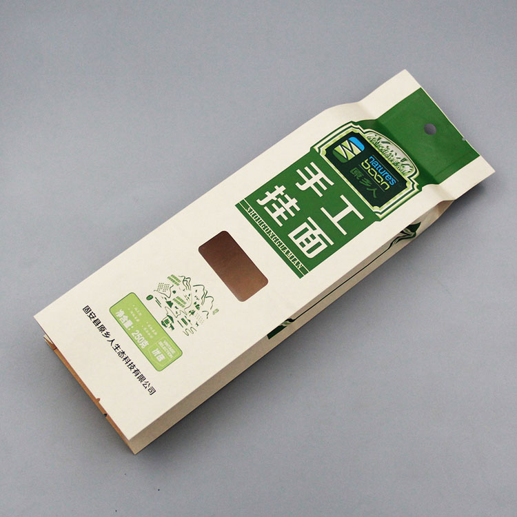 產(chǎn)品名稱:250g手工掛面+黃牛皮紙開窗+側(cè)封帶折邊包裝袋