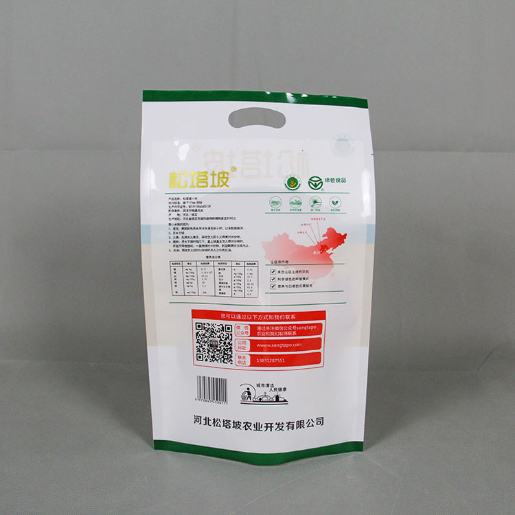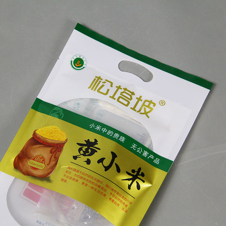 大米小米包裝袋有時候作為直接包裝,因此需要做成真空袋,又稱貼身防潮袋、鋁箔袋、鋁塑復合袋,其材質(zhì)一般為PET/AL/CPE或PET/NY/AL/CPE.其中PET——印刷效果好,NY——透氧性低,AL——阻隔性強、不透光,CPE——包裝內(nèi)層。膠水:水溶性膠水(更加衛(wèi)生、環(huán)保、無溶劑殘留量)此產(chǎn)品具有良好的防靜電、隔氧、屏蔽、防潮、遮光功能及優(yōu)良的熱封性。