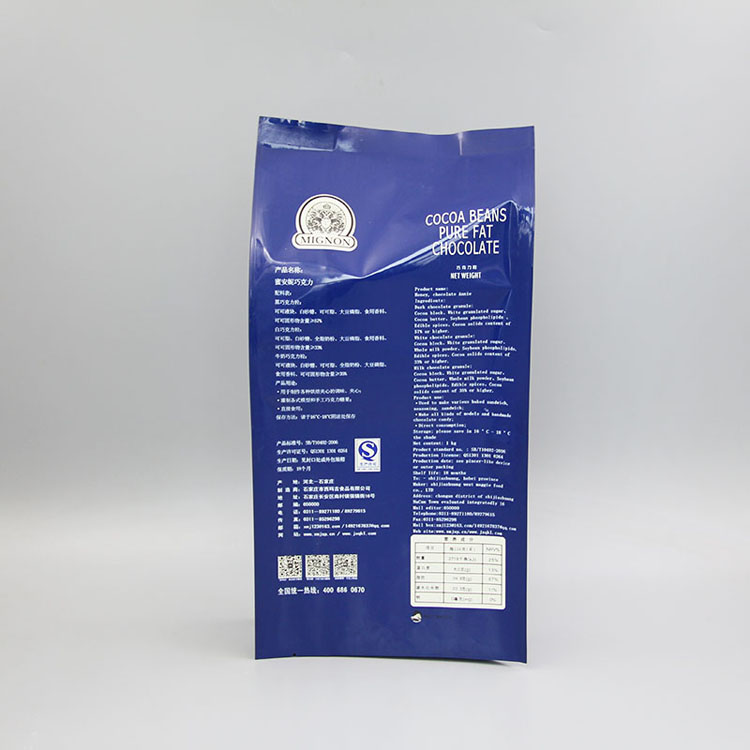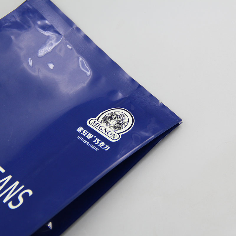 本產品為亮面鍍鋁 四邊封包裝袋 ,鍍鋁層具有一定的遮光作用,阻隔性較強,巧克力一般會使用鋁箔包裝。亮面更能體現鋁箔的光澤感,二者適配性更高。四邊封從包裝材料和生產設