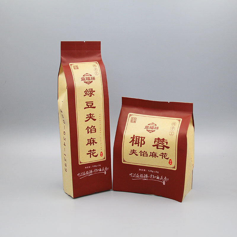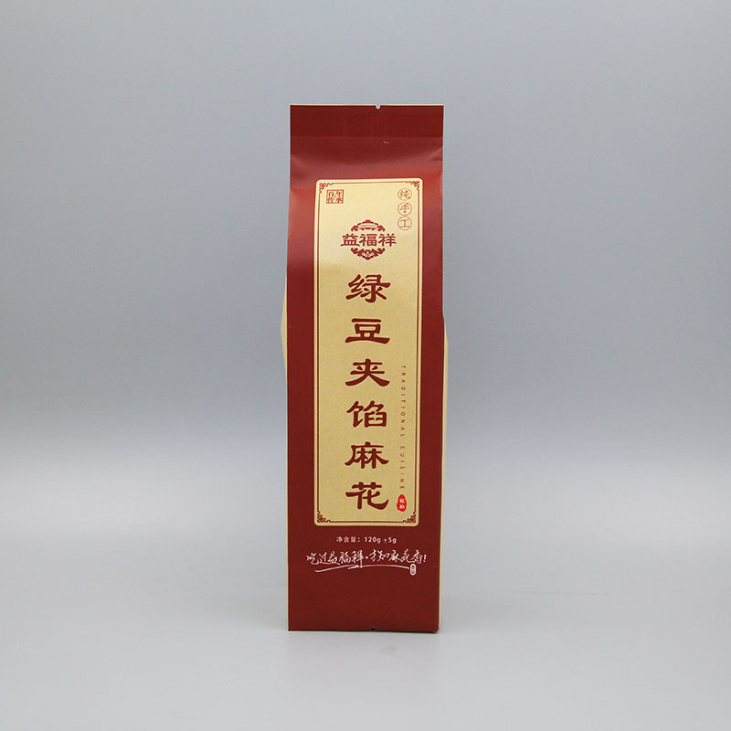 產(chǎn)品名稱:120g綠豆夾餡麻花+黃牛皮紙+背封帶折邊