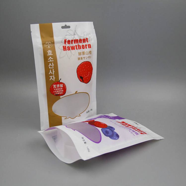 本產(chǎn)品為啞光塑料復(fù)合自立 拉鏈袋 ,局部開窗能使消費者對產(chǎn)品一目了然。拉鏈部分上方可熱封,延長儲存時間,撕裂切口即使在熱封后也能存取。巨人包裝選擇的拉鏈閉合緊密,可