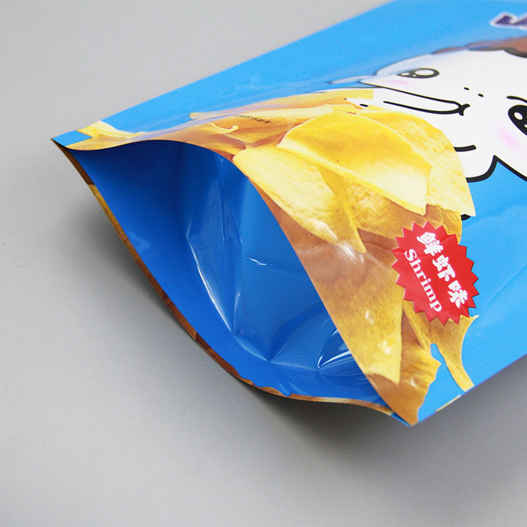 本產(chǎn)品為亮面鍍鋁 自立袋 ,包裝增加鍍鋁層,能很好的起到防水防潮的效果,為薄片類(lèi)食品提供一個(gè)干燥空間,保證食品到消費(fèi)者口中依然酥脆。亮面包裝印刷銀色更鮮艷,更具光澤